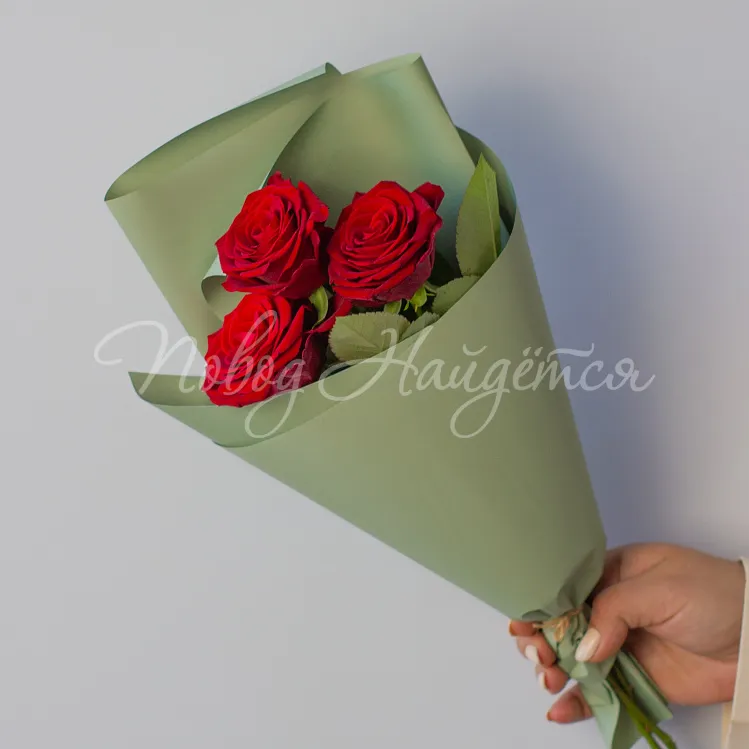- 3 красные розы с бесплатной доставкой