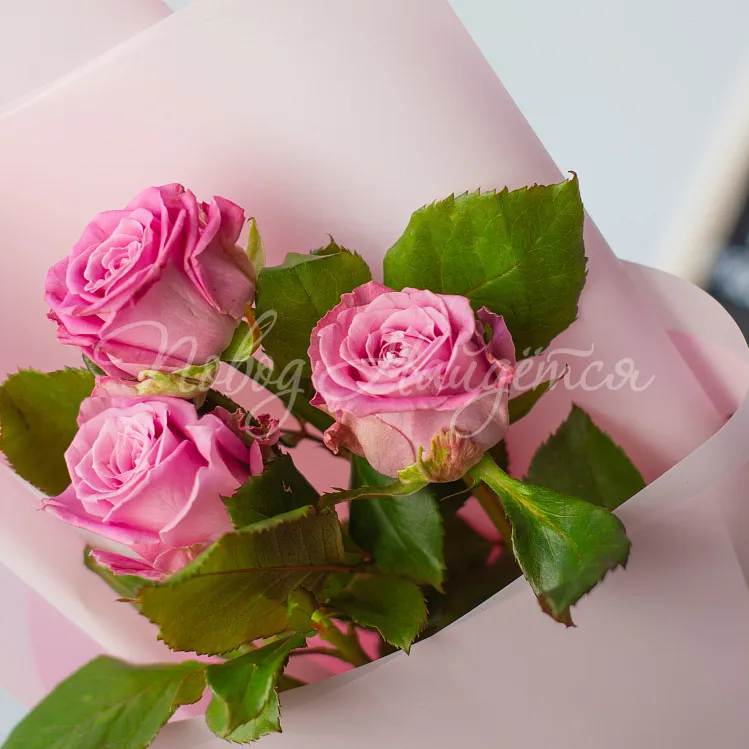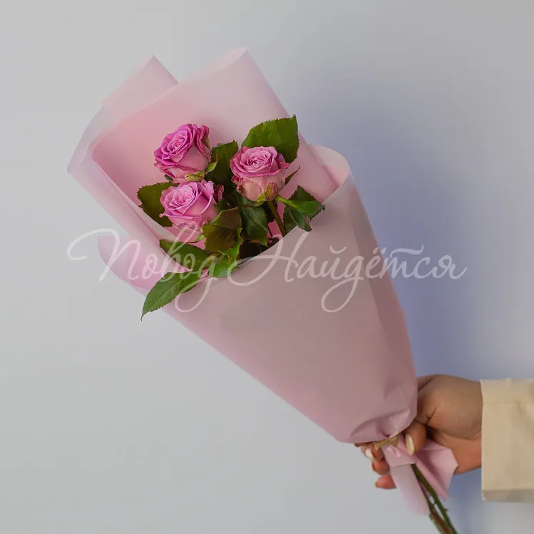 Букет 3 розы в ассортименте в упаковке с бесплатной доставкой по Москве в пределах МКАД.