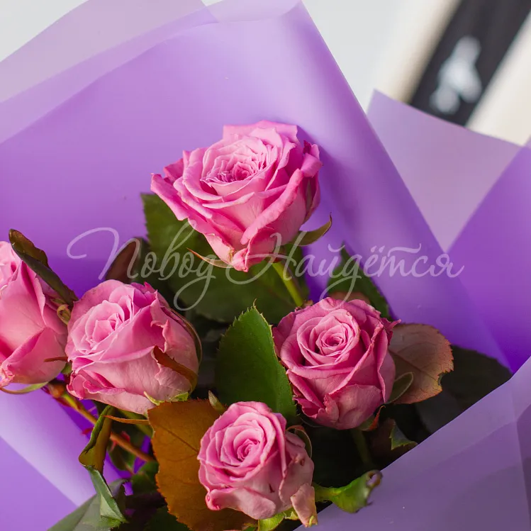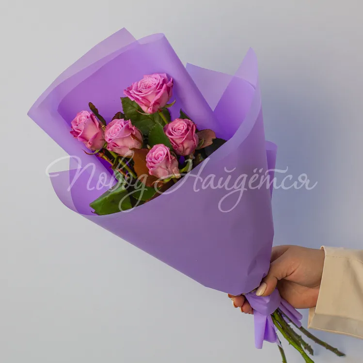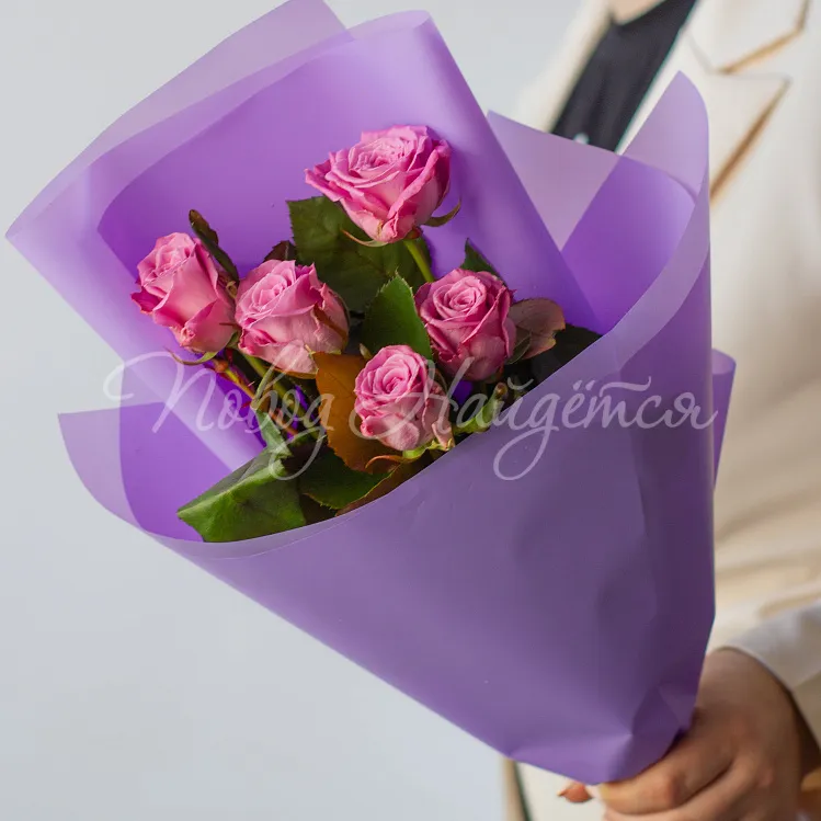 Букет 5 роз в ассортименте в упаковке с бесплатной доставкой по Москве в пределах МКАД.