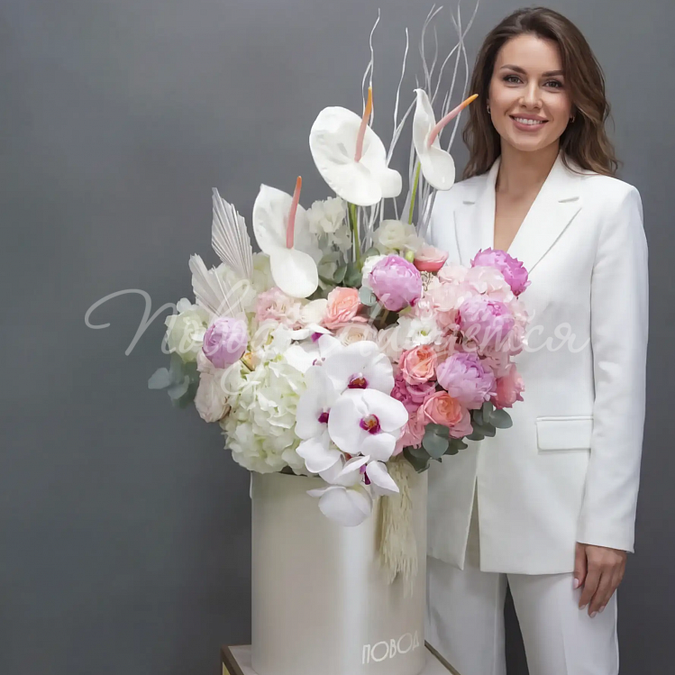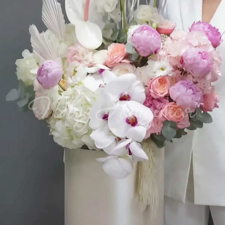В составе композиции есть сезонные цветы. Состав может быть изменен.