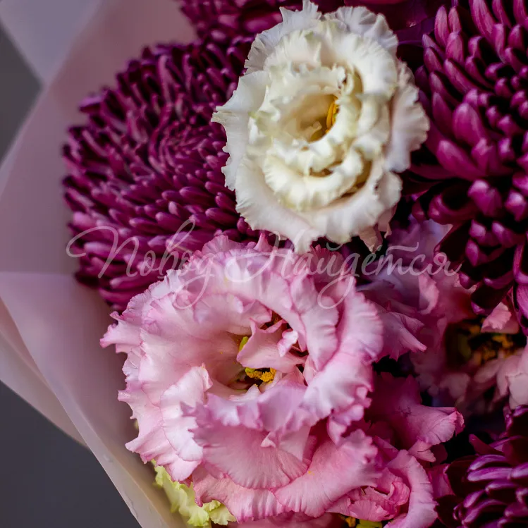 Упаковка: дизайнерская пленка пудровая полупрозрачная розовая.