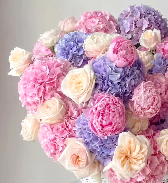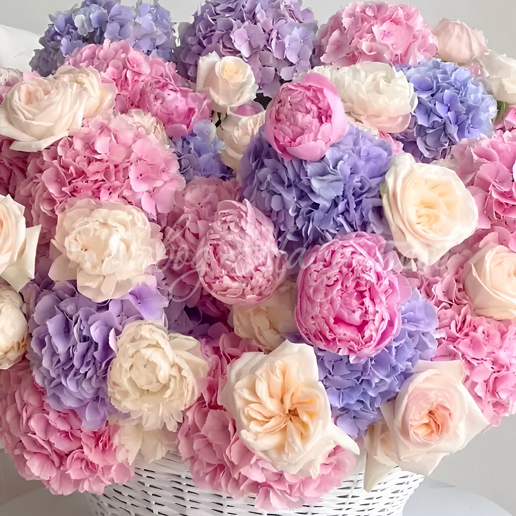 корзина гортензий, пионов