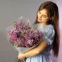 Состав: сирень белая 10шт, тюльпан розовый династия - 35шт, гениста белая 1/10, писташ.