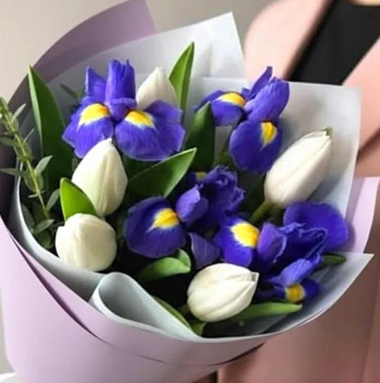 Состав: тюльпан белый 6шт, ирис 5 шт.