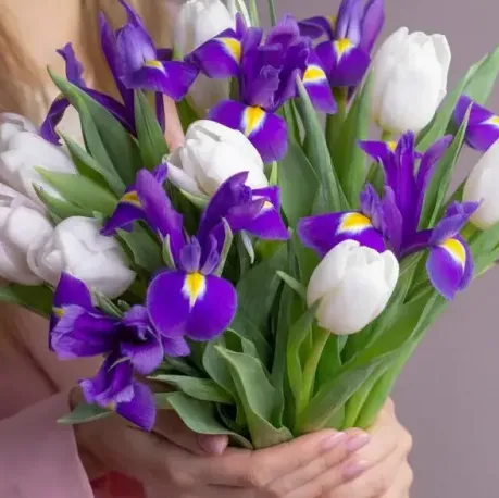 букет с тюльпанами, ирисами