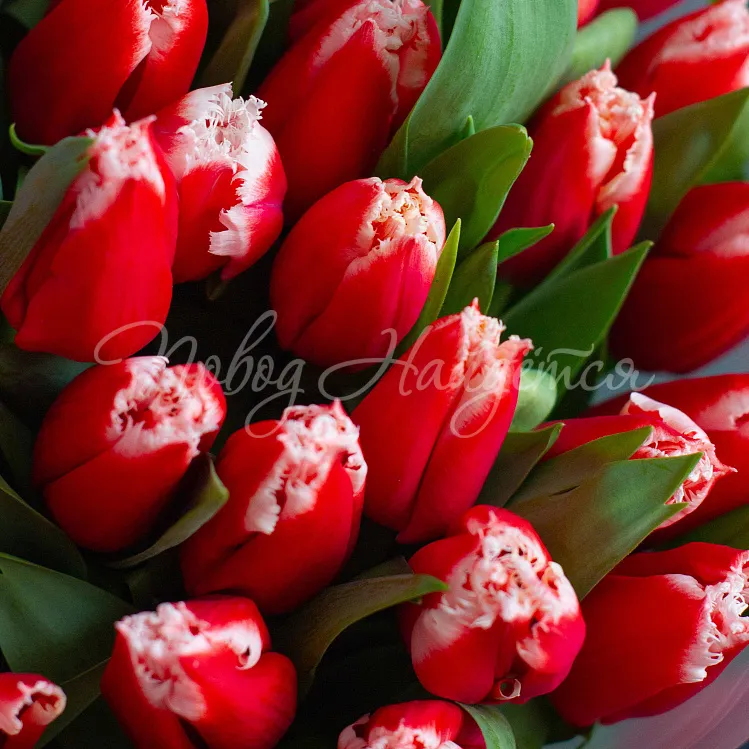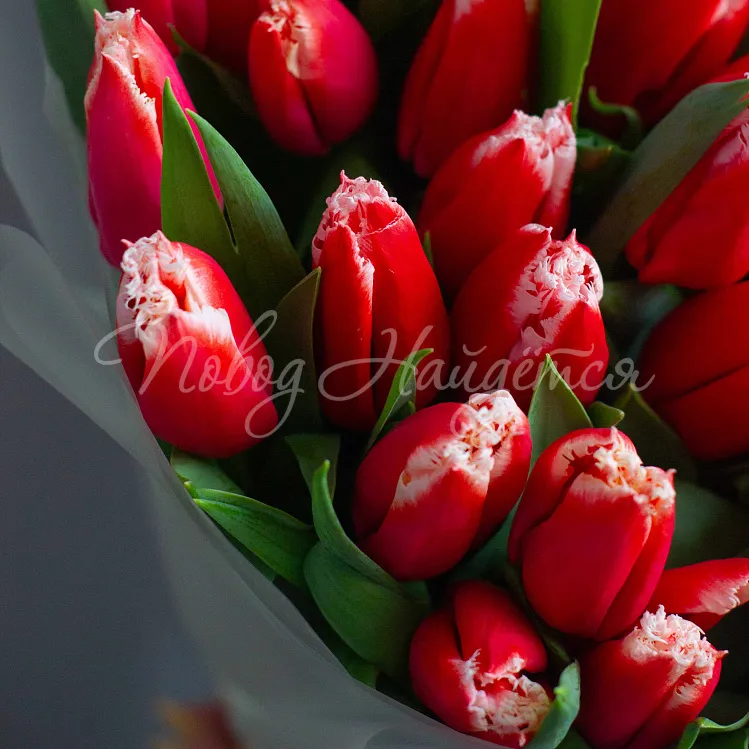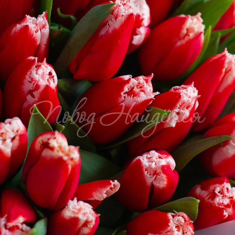 Состав: тюльпан красный с белым центром махровый 31шт.