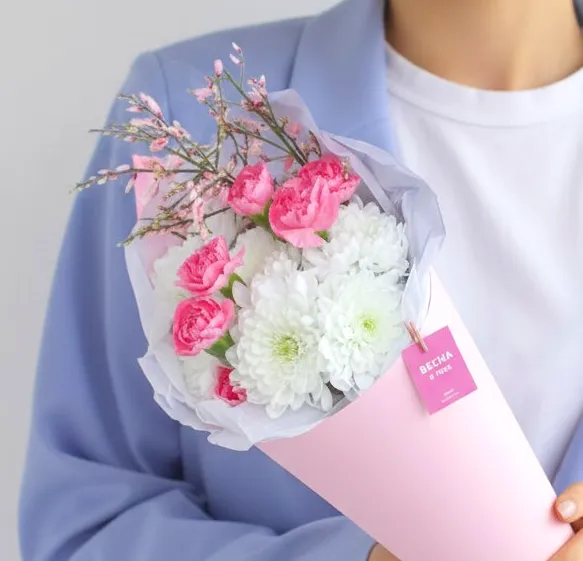 Состав: евро белая, диантус кустовой розовый, гениста розовая.