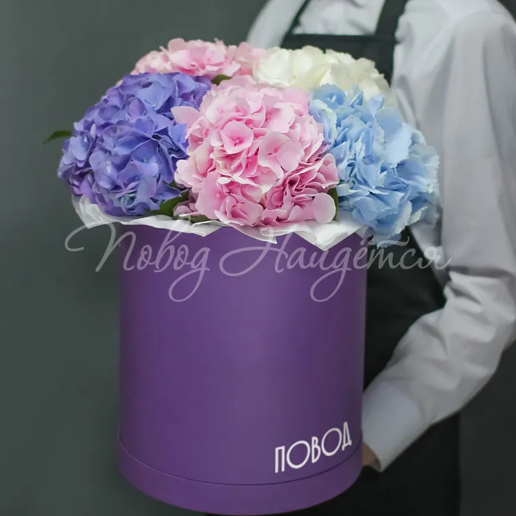 гортензии в шляпной коробке