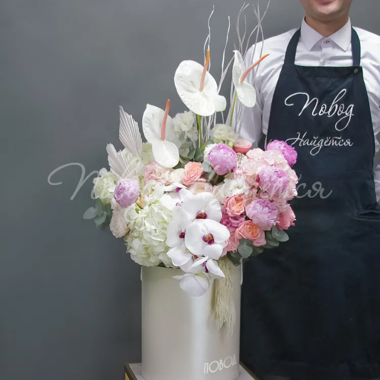 В составе композиции есть сезонные цветы. Состав может быть изменен.