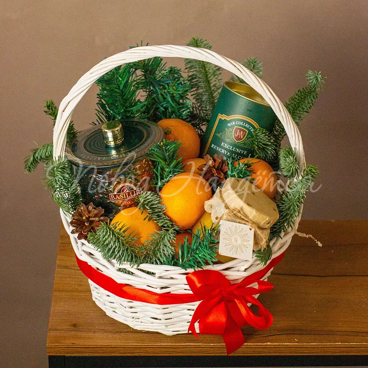 6. Корзина белая круглая 25-30 см, наполнитель.