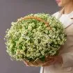 Состав: хризантема евро белая 5 шт,хризантема сантини белая 5 шт, ромашка камилла 5 шт, альстромерия желтая 9 шт, писташ 1 шт