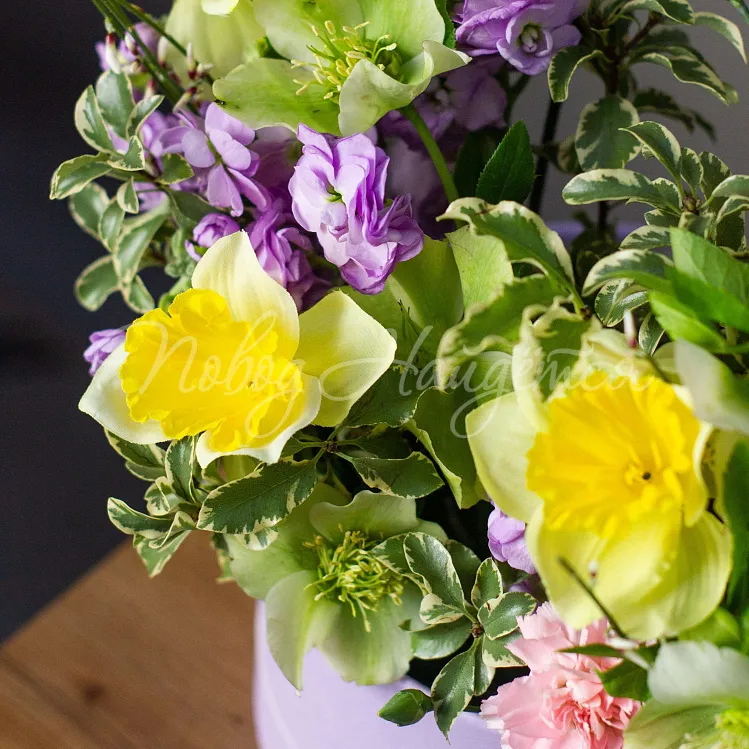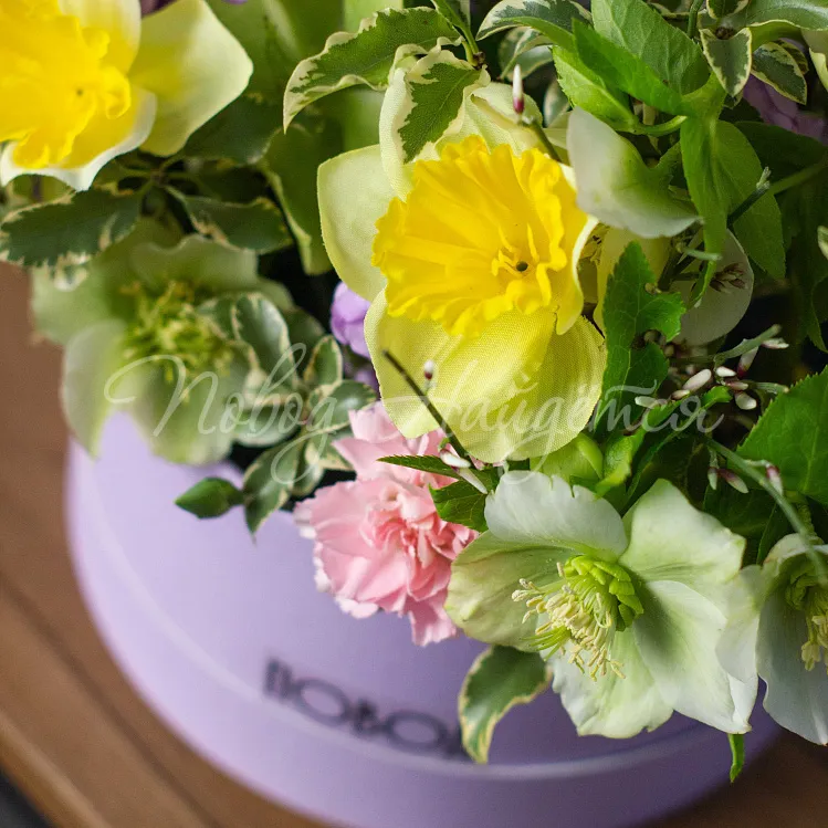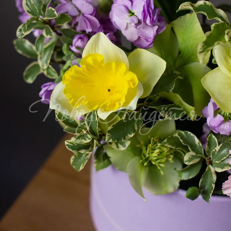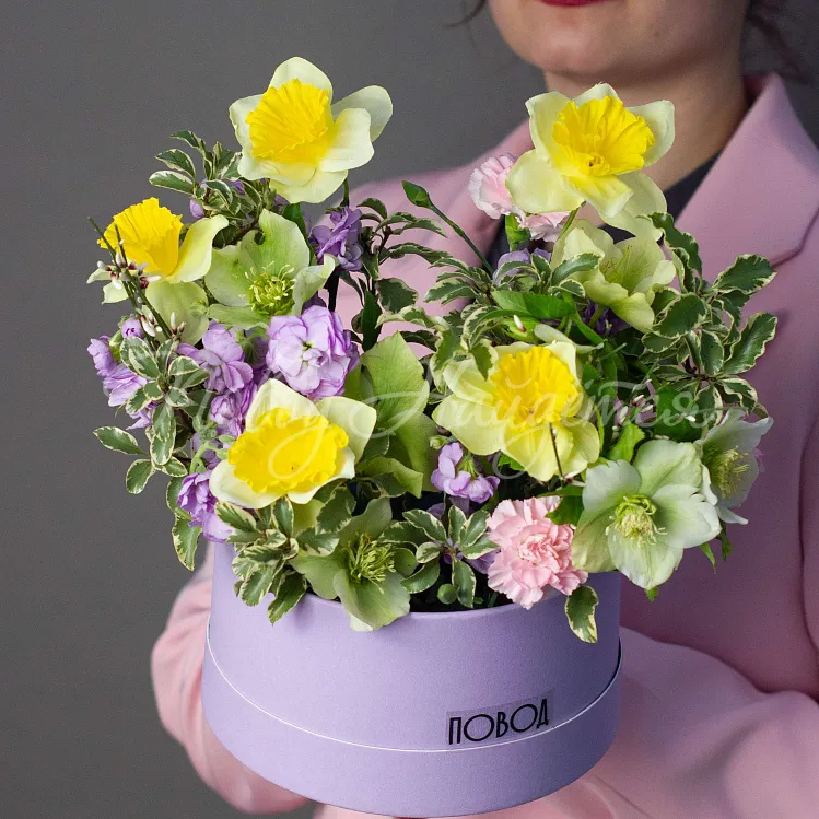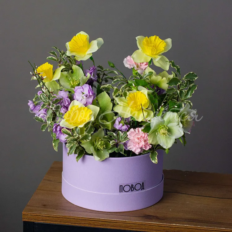 Коробка лавандовая 18 см, биофлора, наклейка Повод черная.