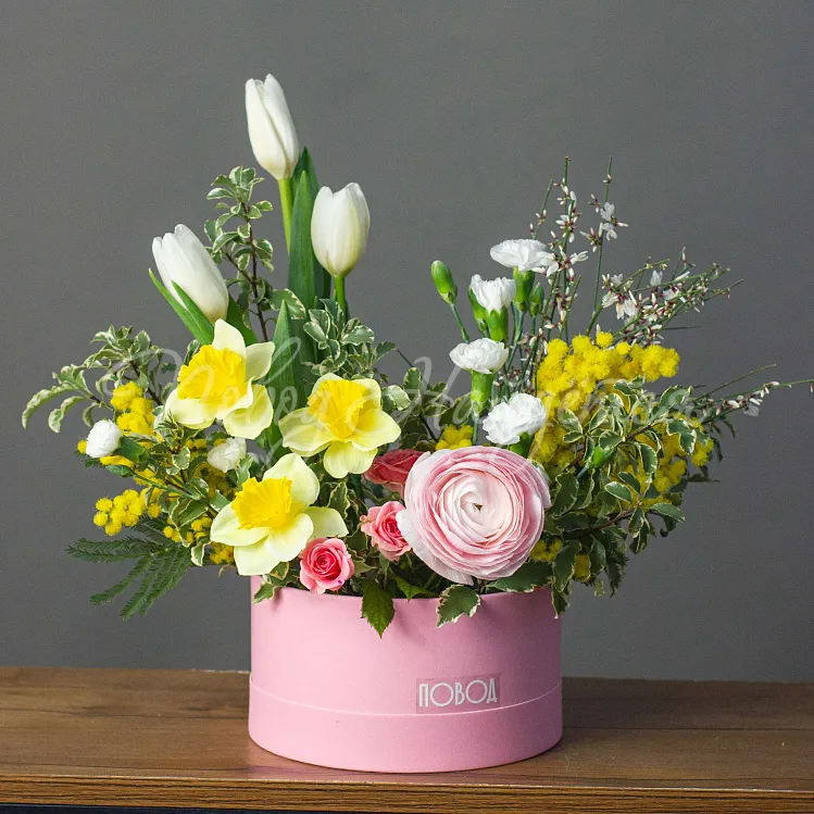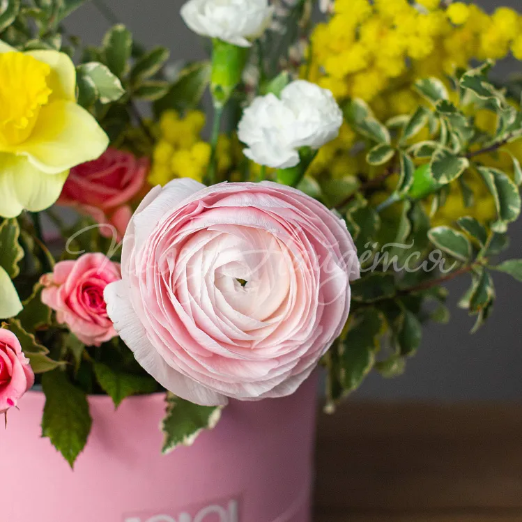 Коробка диаметр 18 см нежно розовая на биофлоре.
