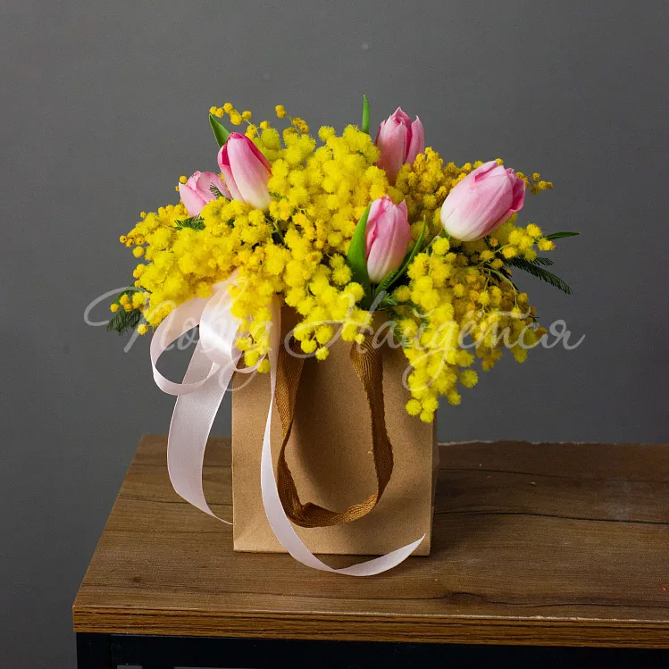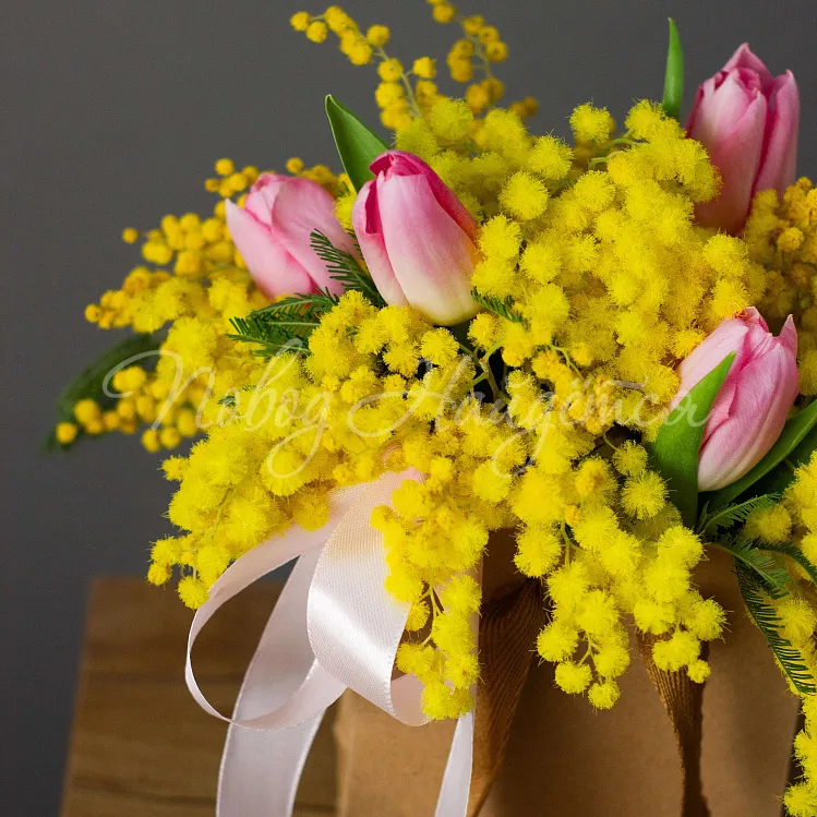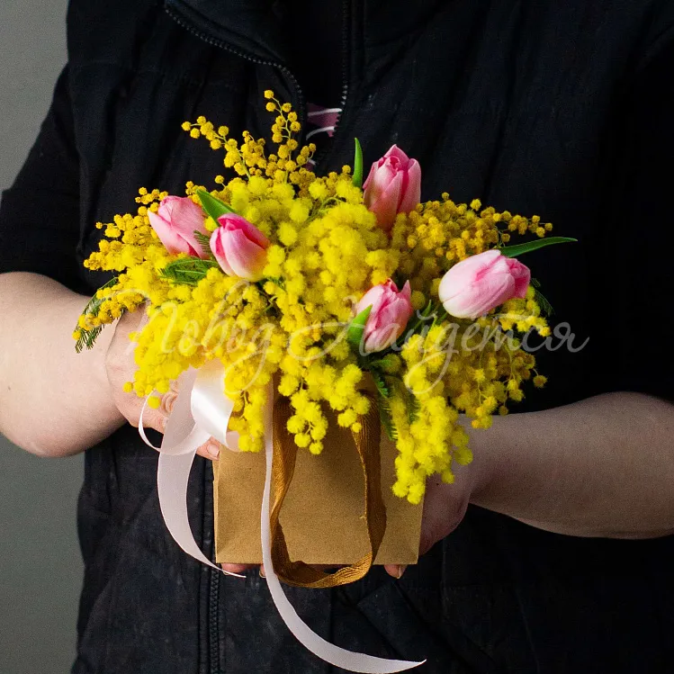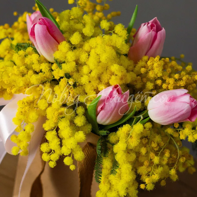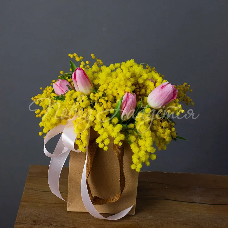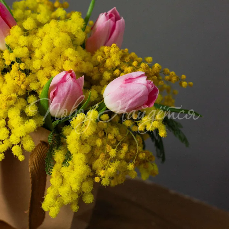 Состав: мимоза, тюльпан розовый династия 5шт.