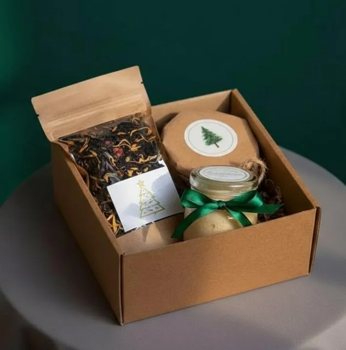Состав: травяной чай в крафт пакете, сыр Бри в крафте, мед суфле банка стекло.