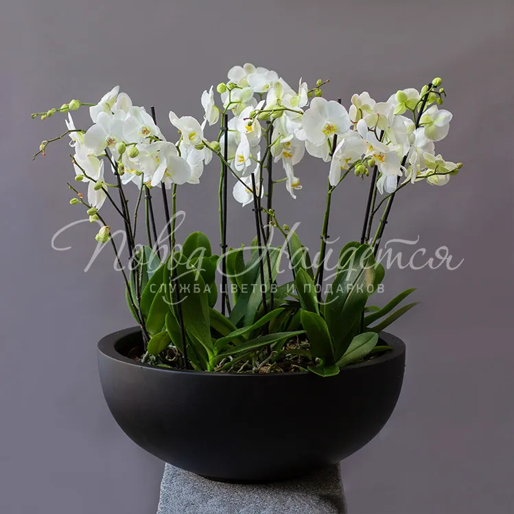 Состав: орхидея фаленопсис белый 9 шт, мох