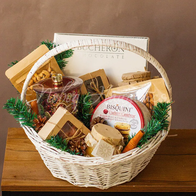 Корзина натуральная круглая диаметр 35-40 см, наполнитель.