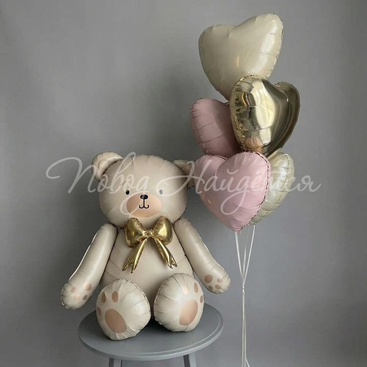 - шар Мишка с бантиком кремовый фольгированный 90 см (арт) - 1 шт.