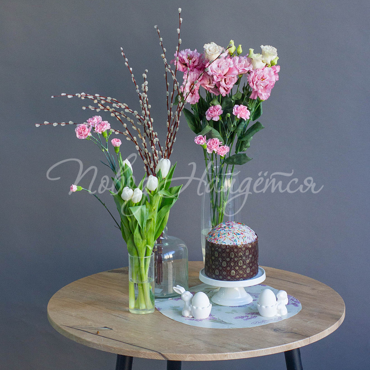 Декор: вазы, кулич, подставка для кулича, для яиц, яйца в стоимость не входят.