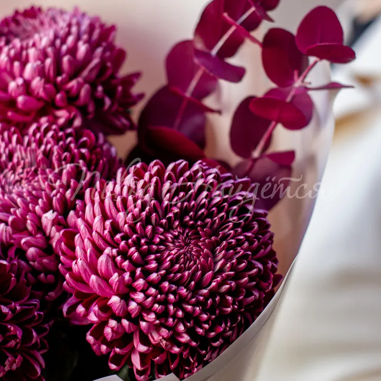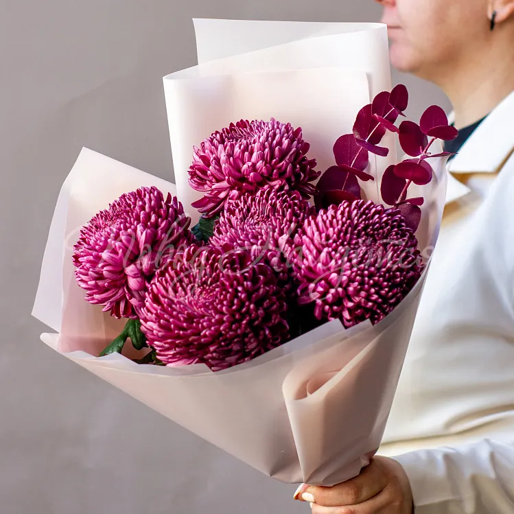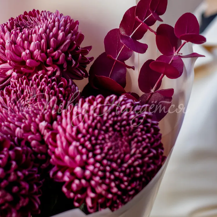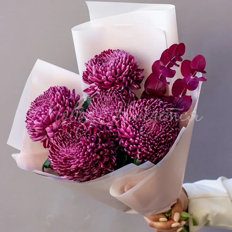 Состав: хризантема одноголовая винная 5шт, эвкалипт винный 2шт.