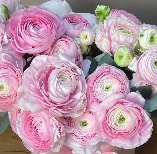 Состав: ранункулюс розовый 29 шт, эвкалипт цинарея, тишью розовая 2шт.