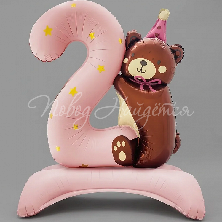 - Воздушные шары «Цифра 2 розовая с Мишкой»