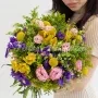Состав: роза мента 3шт, дельфиниум лавандовый 3шт, вибурнум зеленый 1шт, паникум 2шт, ромашка камилла 2шт, малина зелень 0.1 шт, писташ 0.5