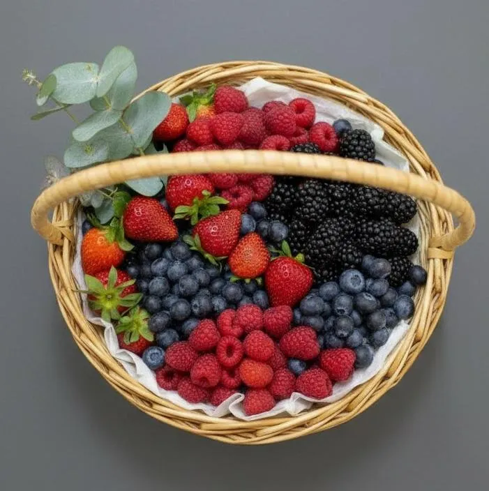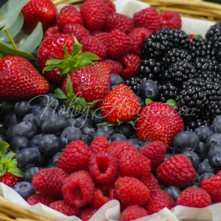 Состав: клубника - 1000гр, малина - 500гр, голубика - 500 гр, ежевика - 250гр, эвкалипт.
