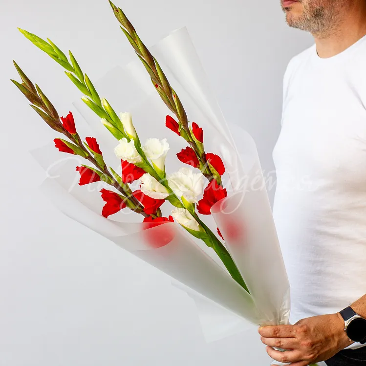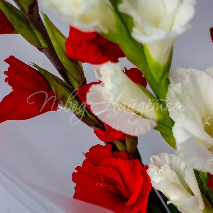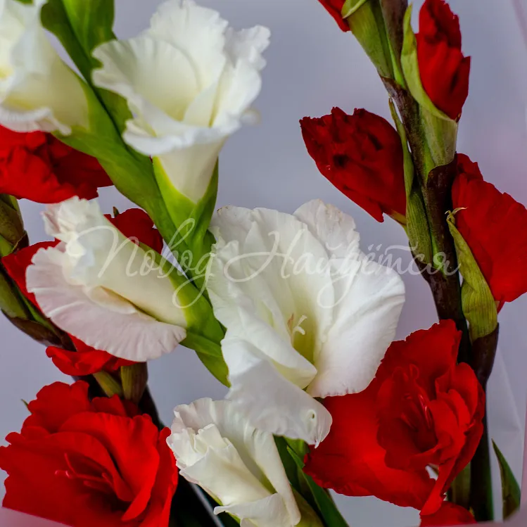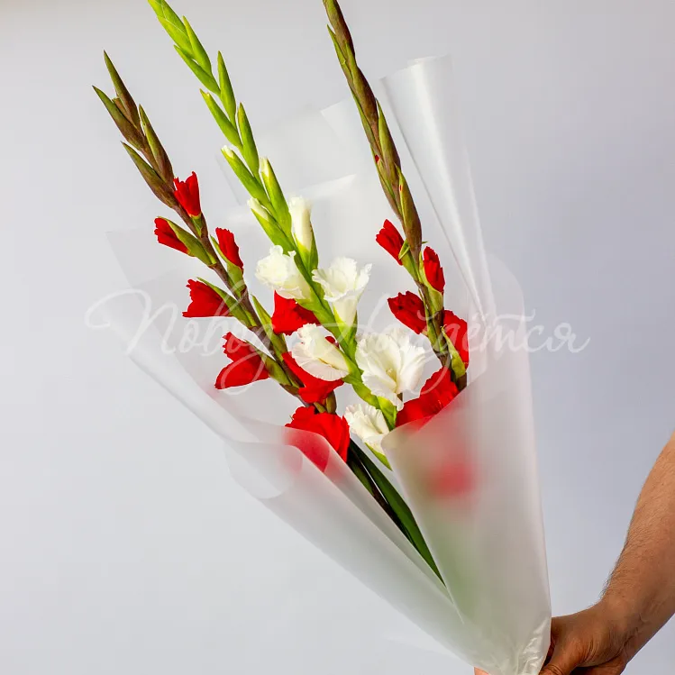 Состав: гладиолус белый 1 шт, гладиолус красный 2 шт