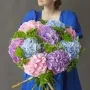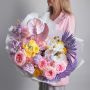 Состав: гортензия розовая( кения) 3шт, роза Пинк охара 7шт, диантус лавандовый 11 шт, маттиола кустовая лавандовая 4 шт, эустома алиса розовая 5 шт, клематис 4 шт, роза пионовидная кустовая лавандовая 5 шт, листья магнолии 2 ветки, писташ 1.5 пуч.