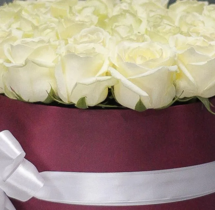 белые розы в шляпной коробке