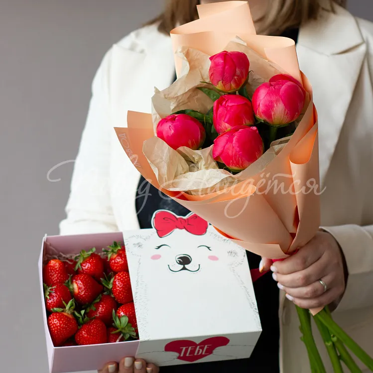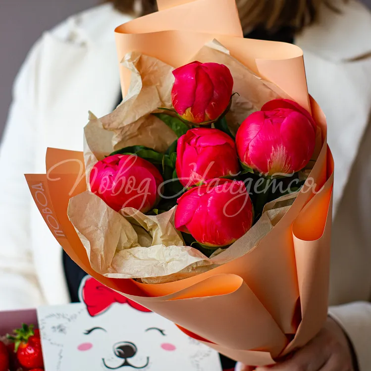 5 пионов с клубникой